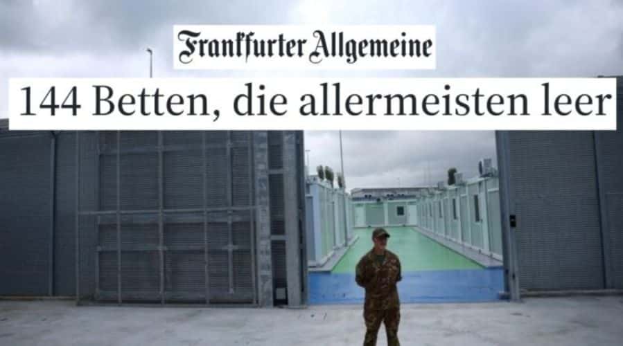 E përditshmja e njohur gjermane “Frankfurter Allgemeine Zeitung” i ka kushtuar një shkrim të gjatë qendrës italiane të trajtimit të emigrantëve në Gjadër. Një investim që mund të prekë 1 miliard euro që sipas gazetës mund të rezultojë një dështim, jo vetëm për Italinë, por edhe për të gjithë idenë e Bashkimit Europian për të trajtuar migracionin në vendet e treta. Në shkrimin që lapsi.al sjell më poshtë të plotë vihet theksi te vendimet e njëpasnjëshme të gjykatave që po e bëjnë këtë qendër gjithnjë e më të pavlerë.