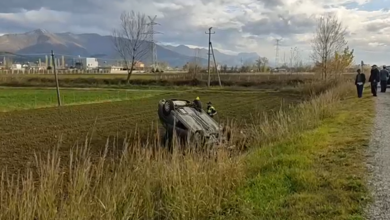 Aksident në aksin Lezhë-Milot, makina përmbyset në arë