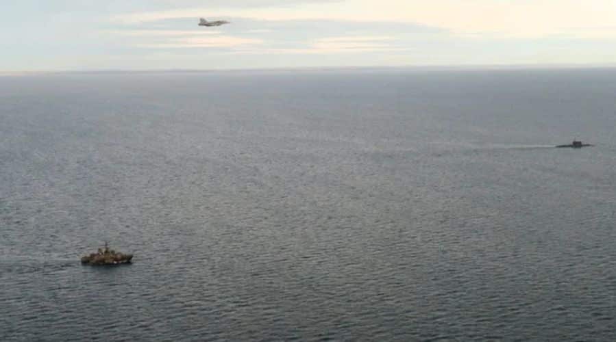 Sipas deklaratës, avionët luftarakë dhe anijet luftarake të Suedisë u ndeshën me nëndetësen në ngushticën Kattegatt – që ndan Danimarkën nga Suedia – dhe po e ndjekin atë nga afër.
