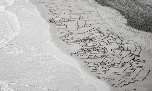 Art në rërë/ Artisti që i kthen plazhet në piktura gjigante