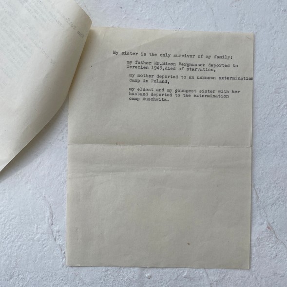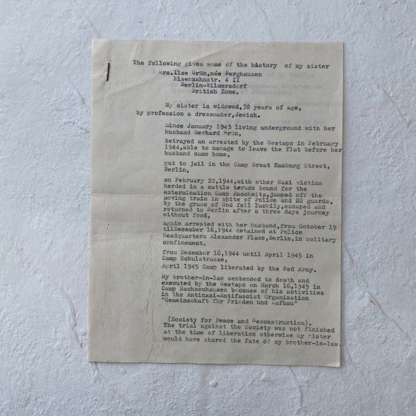 Letra u dërgua nga Berlini në vitin 1945 nga Ilse Loewenberg, e cila lindi në vitin 1908 dhe i mbijetoi tmerreve të Shoahut në vitet 1940, pavarësisht se u detyrua të hipte në një tren për në kampin e përqendrimit Auschwitz-Birkenau.
