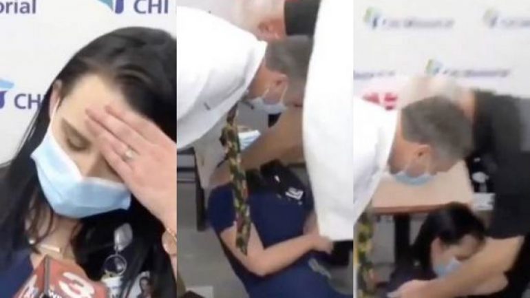 Bëri vaksinën anti-Covid, momenti kur infermierja humb ndjenjat live teksa po fliste para gazetarëve (Video)