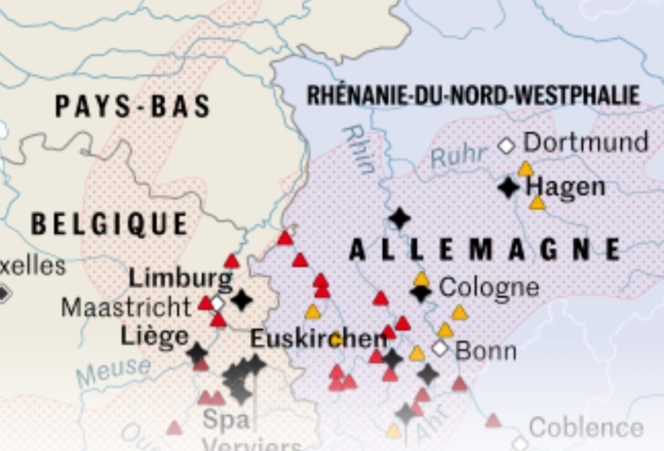 Më e goditura ishte Gjermania në shtetin e saj më të populluar të Nordrhein-Westfalen dhe në Rhineland-Palatinate fqinje.