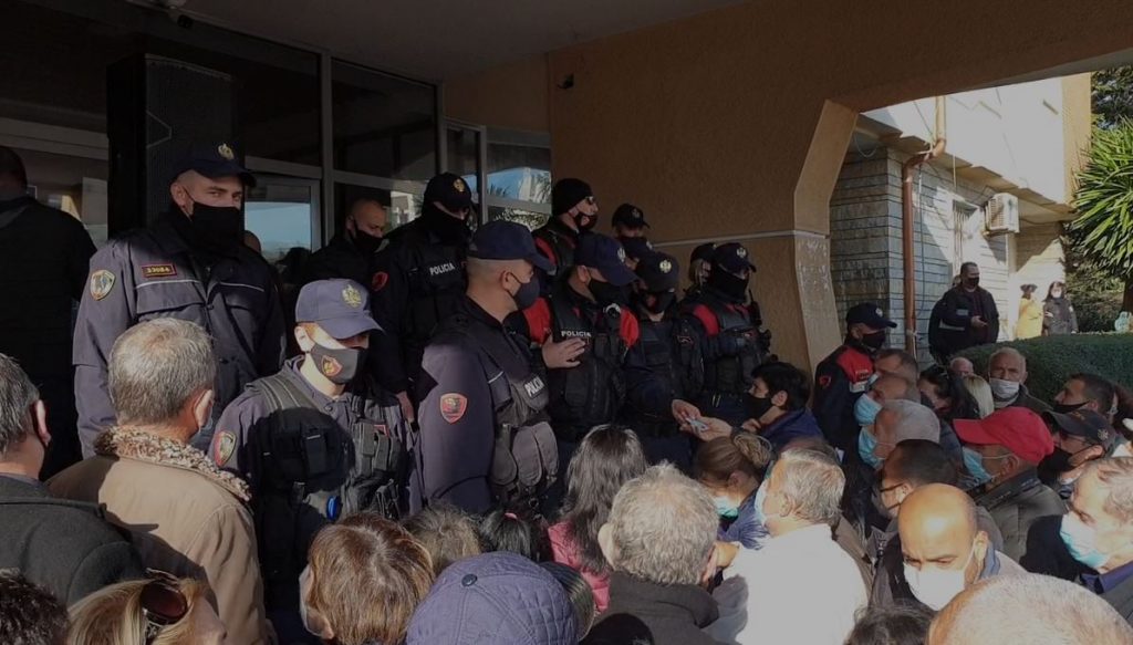 Covid-19 nuk ekziston/ Durrsakët presin në shkallët e prefekturës për lekët e tërmetit, harrohet distanca