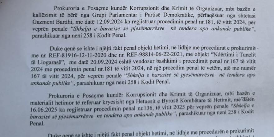 “Procedimi penal nr. 181, viti 2024, që ka nisur mbi bazën e kallëzimit tonë, nuk do të jetë kurrë i plotë nëse paratë e korrupsionit nuk kthehen në buxhetin e shtetit,” – shkruan Bardhi.