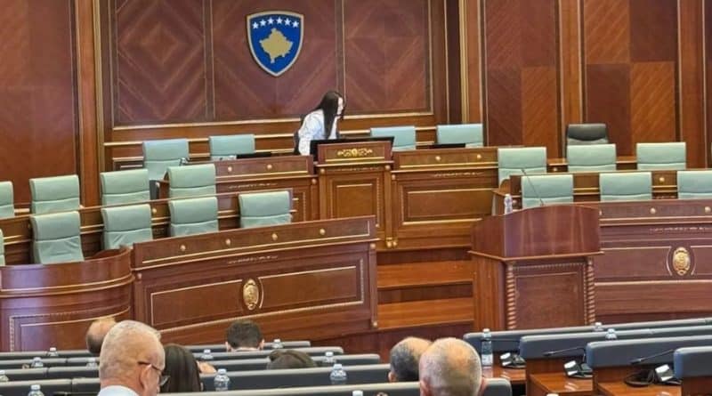 Deputetja e PDK-së Sala Jashari ilegalisht kyç mikrofonin e Kuvendit pas mbylljes se seancës për t’iu mundësuar fjalimet deputetëve të opozitës
