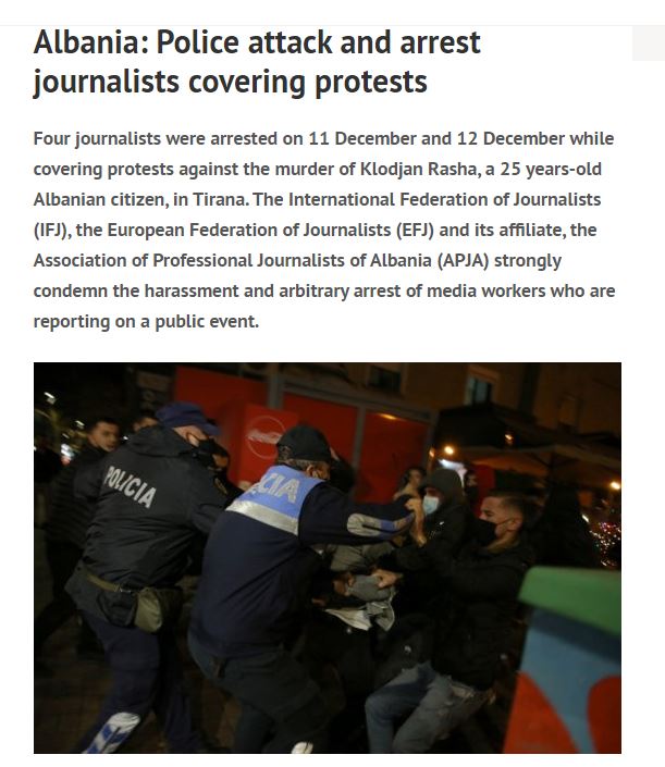 Në artikullin e IFJ këto raste nuk konsiderohen të izoluara në Shqipëri, ku sipas tyre, gazetarët shpesh mbahen të ndaluar nga policia, edhe ku identifikohen si punonjës të medias.