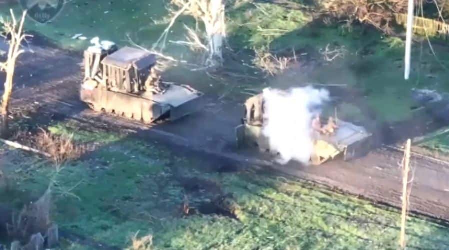 Ministria e Mbrojtjes së Ukrainës publikoi pamjet ku u tha se dy makina luftarake u shkatërruan e trupat këmbësorie u eliminuan.