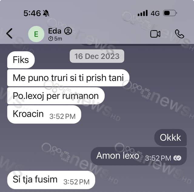 Eda (Naureda Llagami): Përveç këtyre, dua SPAK-un në dorën tonë! Fiks! Më punon truri si t’i prish tani. Po lexoj për Rumaninë, Kroacinë.