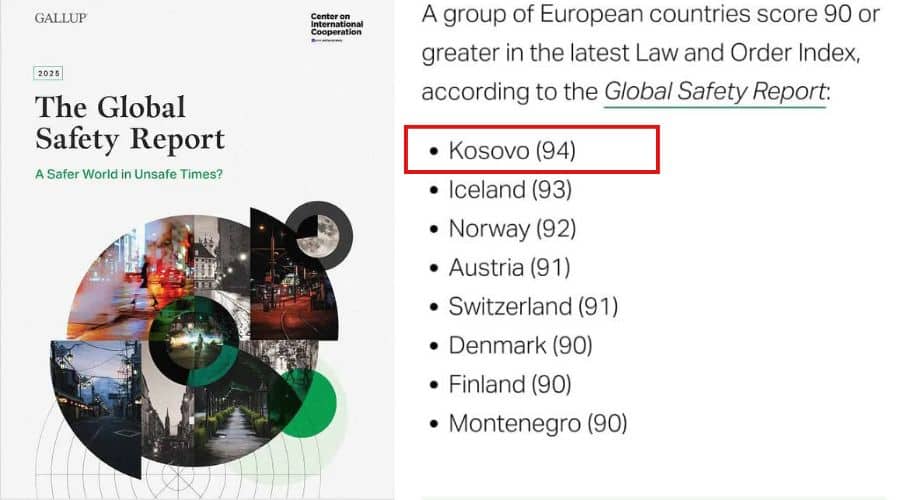E jashtëzakonshme: Kosova ngjitet në majat e listës globale të sigurisë sipas Gallup – e para në Evropë, e treta në botë