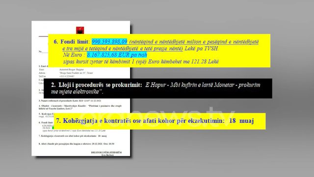 Sipas informacionit të publikuar në dokumentacionin e tenderit, fondi limit është 990 milionë lekë ose 8.1 milionë euro pa TVSH dhe është shpallur me procedurë të hapur dhe me kohëzgjatje 18 muaj.
