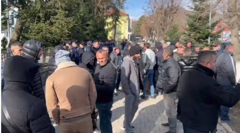 Protesta po mbahet nën vëzhgimin e një numri të madh forcash policore, të cilat janë pozicionuar në hyrje të Bashkisë.