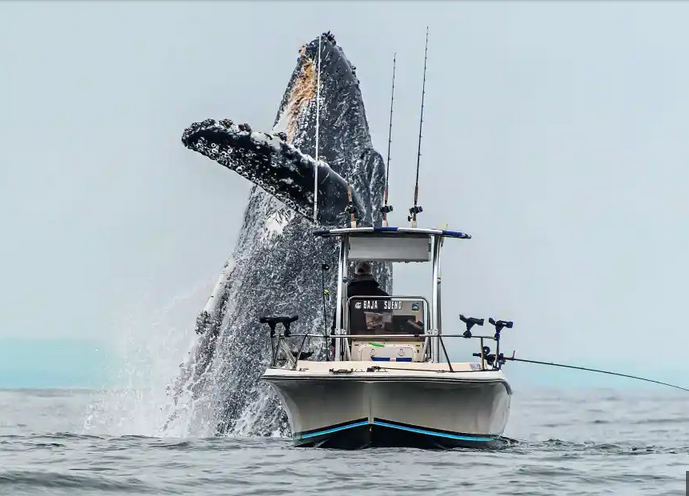Në një prej tyre shihet një balenë madhështore gungaçe që del në sipërfaqe shumë pranë një barke turistike në Kaliforni, ndërsa në një tjetër shqiponja përfshihen në një konflikt me dhelprën e dëborës, me shumë gjasa në konkurim për gjahun e radhës.