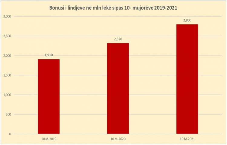 Sipas të dhënave zyrtare nga Ministria e Financave në fund të 10 -mujorit 2021 u paguan 2.8 miliardë lekë për bonusin e lindjeve, ndërkohë që i gjithë fondi vjetor ishte 2.2 miliardë lekë. Të dhënat nga financat në treguesit mujor fiskal tregojnë se plani vjetor për bonusin e bebeve u harxhua qysh në muajin gusht.