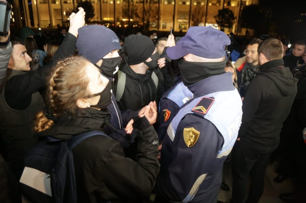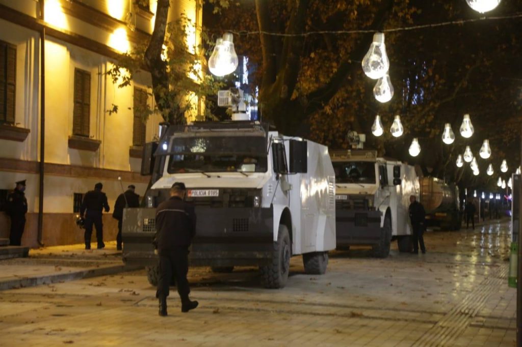 Pas tubimit përballë Kryeministrisë, në orën 19:20 protestuesit janë drejtuar për te Drejtoria e Policisë së Tiranës, në rrugën “Sami Frashëri”. Në këto momente policia ka hedhur ujë me presione dhe ka nisur të shpërndajë protestuesit.