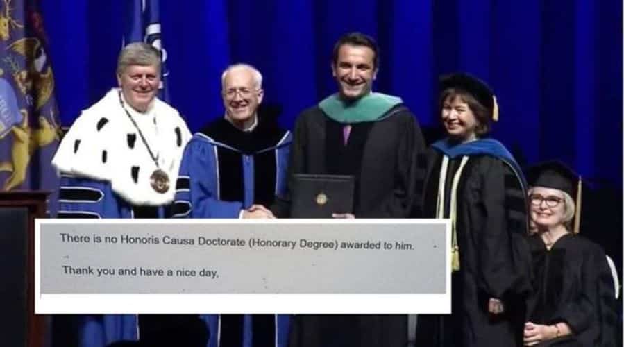 Një dëshmi e kësaj është dhe një denoncim i mbërritur në redaksinë e “Ora News” nga një qytetar, i cili teksa kërkon të respektohet e drejta e anonimatit, pretendon se ka zbardhur një të vërtetë mbi një ngjarje të 9 viteve më parë, ku u dha lajmi i madh se Kryetari i Bashkisë së Tiranës, Erion Veliaj, i cili nuk ishte subjekt i drejtësisë në atë kohë kishte marrë titullin “Doctor Honoris Causa” nga “Grand Valley State University” në Shtetet e Bashkuara të Amerikës, ku edhe ka kryer studimet e larta.