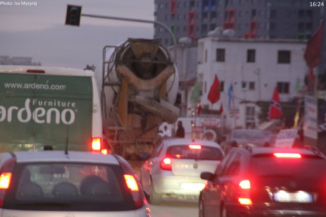 Gazetari i Ora News, Isa Myzyraj, ka vënë re se në një rrugë në Astir brenda një ore (60 minuta) kalojnë 17 betoniere.