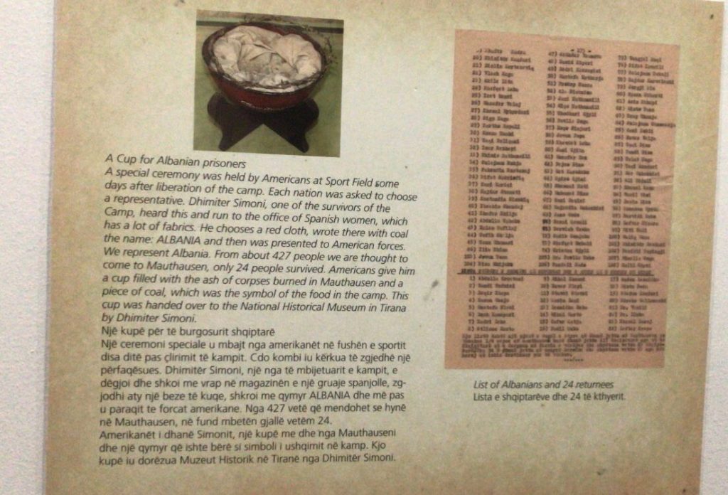 “Fatet e shqiptarëve të mbijetuar në Mauthausen” një ekspozitë me fakte, dokumente, foto, video për historinë e të mbijetuarve shqiptarë në Mauthausen u hap të premten në Muzeun Historik Kombëtar. Ekspozita që u çel në MHK vjen e kuruar nga Elton Koritari. Ajo është pjesë e një projekti dy vjeçar, një ide e organizatës DMO Albania (Destination Management Organisation, me seli në Tiranë) në bashkëpunim me Muzeun Historik Kombëtar, e financuar nga EVZ Stiftung Foundation (Foundation “Remembrance, Responsibility and Future”, me seli në Berlin. Thelbi i projekteve të financuara nga ky fondacion është sjellja në kujtesë dhe mbajtja gjallë e dëshmive dhe historive të atyre që vuajtën nga Nacional Socializmi – Gjermania naziste e viteve ‘33-45.