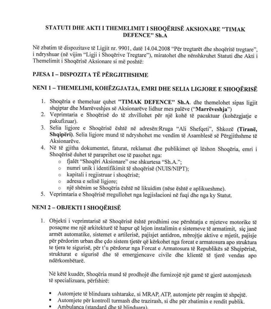 Me pak fjalë, kjo është shoqëria që do të ketë monopolin e furnizimit të ushtrisë, policisë, gardës, emergjencave civile etj.. me automjete. Vendi i ushtrimit të aktivitetit të shoqërisë do të jetë në ish uzinën e pjesëve të këmbimit të automjeteve, në Shkozë, në godinën ku ndodhej televizoni News 24.