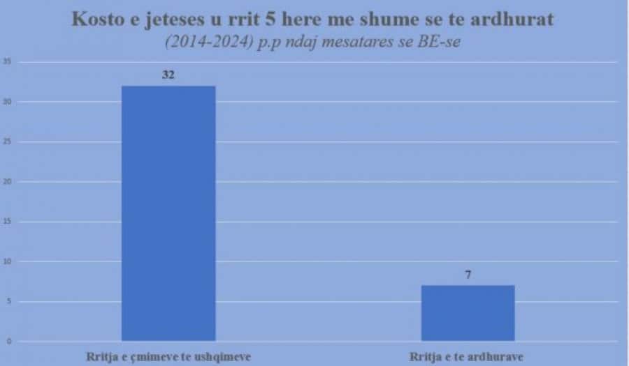 Sipas të dhënave të Eurostat, nëse çmimet e ushqimeve në Shqipëri janë rritur me 32 pikë përqindje relativisht me mesataren e BE-së, të ardhurat për frymë janë rritur me 7 pikë për qind. Pra, shqiptarët po konvergjojnë në Europë për koston e jetesës, por janë vite drite larg për nivelin e të ardhurave.