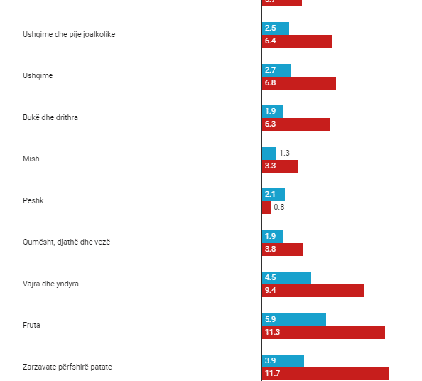 Grafiku/ Sa më shtrenjtë po na kushton jetesa, krahasuar me një vit më parë