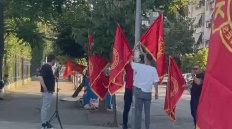 Për këtë ngjarje, disa tifozë shkuan të enjten mbrëma në zyrat e FSHF-së në Tiranë dhe vendosën flamujt e UÇK-së jashtë rrethimit të institucionit. Aktivisti Gent Progni është penguar teksa po vendoste flamujt nga një civil që ka tentuar t’i hiqte ato. Personi në fjalë dyshohet të jetë punonjës i një kompanie private sigurie, edhe pse nuk mbante uniformë apo identifikim zyrtar. Kujtojmë se për largimin e flamujve të UÇK-së nga stadiumi kombëtar reagoi edhe Organizata e Veteranëve të Luftës së UÇK-së (OVL).