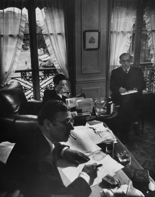 Në një fotografi të realizuar në Paris, në shtator të vitit 1946, brenda një dhome shihen ulur tri personalitete të njohura të artit e të kulturës botërore, ndërkohë që i katërti po fotografonte.