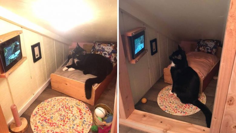 I ka ngazëllyer të gjithë: Shfrytëzoi hapësirën e vogël në shtëpi dhe i bëri një dhomë maces së tij