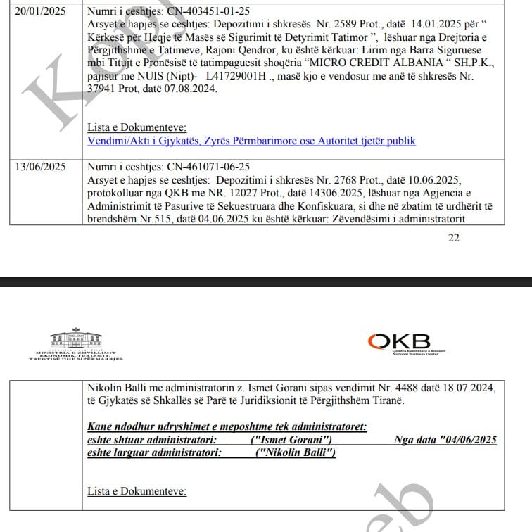 Tashmë Ismet Gorani është administratori që administron të dy shoqëritë, si Final ashtu dhe MCA. Por fakti që çdo administrator qëndron më pak se 3 muaj në detyrë, ngre pikëpyetje të mëdha, se si po administrohen dy kompanitë në qendër të skandalit të mikrokredive nga shteti.