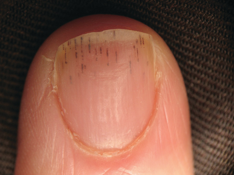 Sidoqoftë, në rrethana të rralla, gjendja do të krijojë vija të errëta nën thonj, të njohura ndryshe si hemorragji të çara.