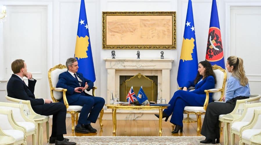 Presidentja e Kosovës, Vjosa Osmani, priti sot Ambasadorin britanik Jonathan Hargreaves, ku u diskutuan zhvillimet e fundit në vend dhe bashkëpunimi strategjik me Mbretërinë e Bashkuar.