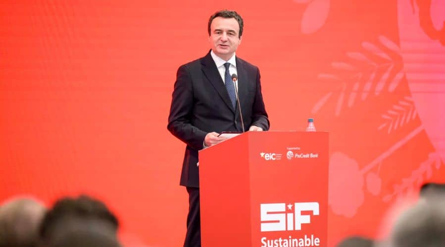 Kryeministri në detyrë i Republikës së Kosovës, Albin Kurti, mori pjesë në hapjen e Forumit të II-të për Investime të Qëndrueshme, të organizuar në Prishtinë nga Këshilli i Investitorëve Evropian (EIC) dhe mbështetur nga ProCredit Bank. Në këtë vit, forumi u fokusua në temën “Dekarbonizimi dhe Net Zero: Fuqizimi i NVM-ve për një të Ardhme të Qëndrueshme”, derisa ofron një mundësi unike për të eksploruar rrugën e Kosovës drejt Net Zero dhe rolin kyç që luajnë Ndërmarrjet e Vogla dhe të Mesme (NVM).