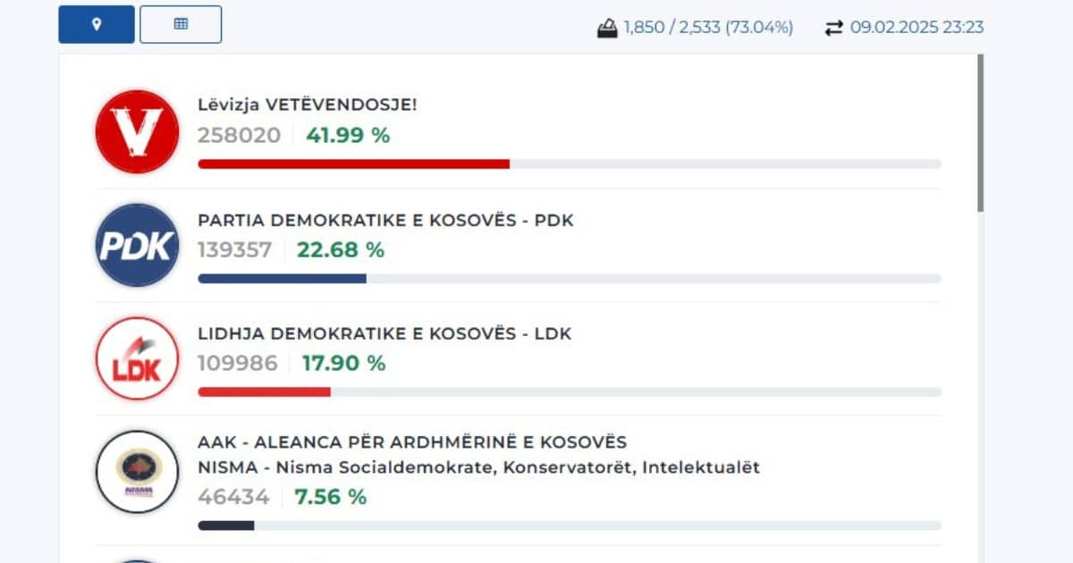 KQZ numëron mbi 73 për qind të votave – LVV shkëputet dukshëm nga partitë e tjera