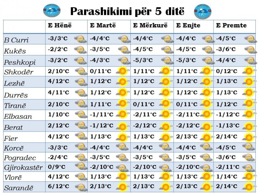 TIRANË– Nga dita e nesërme, shërbimi meteorologjik Ushtarak paralajmëron se ditën e nesërme në vend do të vijojë ndikimi i masave ajrore të ftohta të cilat do të sjellin ngrica në akset rrugore në pjesën më të madhe të vendit gjatë mëngjesit.