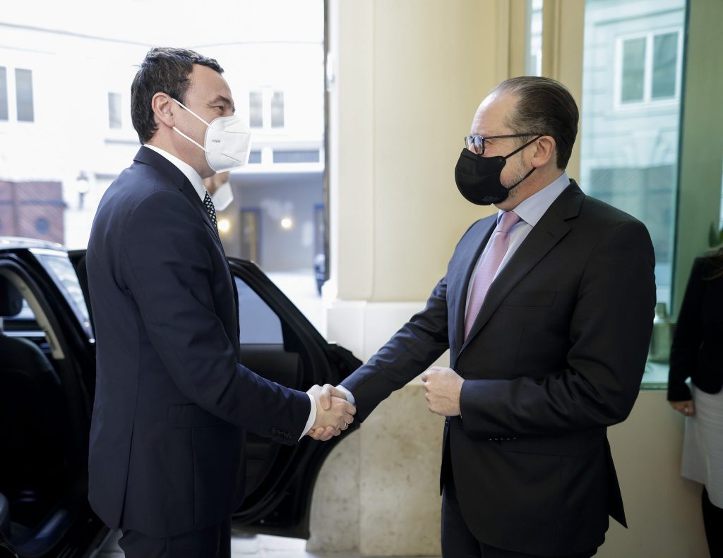 Kryeministri i Republikës së Kosovës, Albin Kurti, është mirëpritur në rezidencën e Kancelarisë Federale të Austrisë nga Kancelari i Austrisë, Alexander Schallenberg, me të cilin ka zhvilluar takim bilateral.