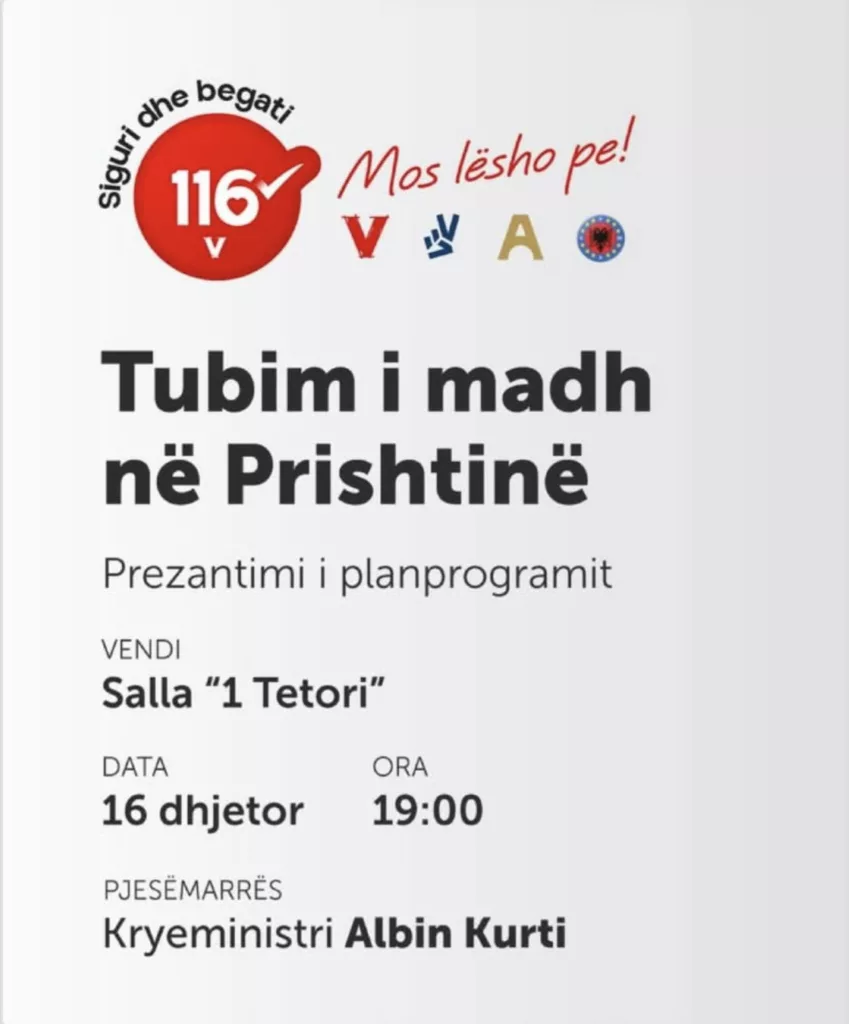 Kurti do të prezantojë planprogramin, VV-ja fton në tubimin e madh në Prishtinë