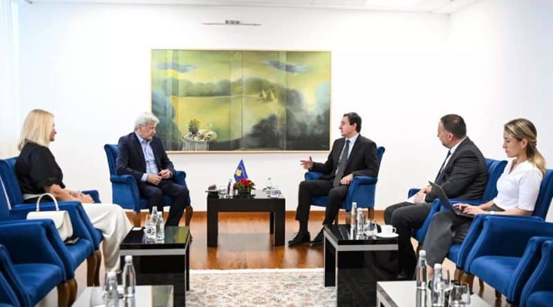Kryeministri në detyrë i Republikës së Kosovës, Albin Kurti, mirëpriti sot në takim Drejtorin Ekzekutiv të Raiffeisen Bank International, Johann Strobl dhe Shefen Ekzekutive të Raiffeisen Bank në Kosovë, Anita Kovaçiq.