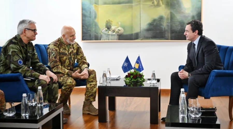 Në komunikatën e lëshuar nga Zyra e Kryeministrit thuhet se Kurti bashkë me anëtarët e kabinetit qeveritar, ka pritur në takim kreun e Komitetit Ushtarak të NATO-s, Admiralin Giuseppe Cavo Dragone, dhe kreun e Komitetit Ushtarak të Bashkimit Evropian, Gjeneralin Sean Clancy.