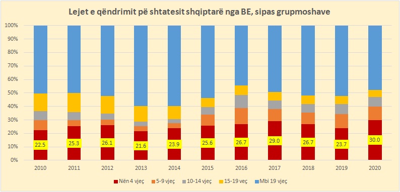 Të rinjtë shqiptarë të moshës nën 19 vjeç po marrin pjesën më të madhe të lejeve të qëndrimit që po jepen nga vendet anëtare të Bashkimit Europian për shtetasit jo të BE-së, ku rekordin po e mbajnë fëmijët nën 4 vjeç.