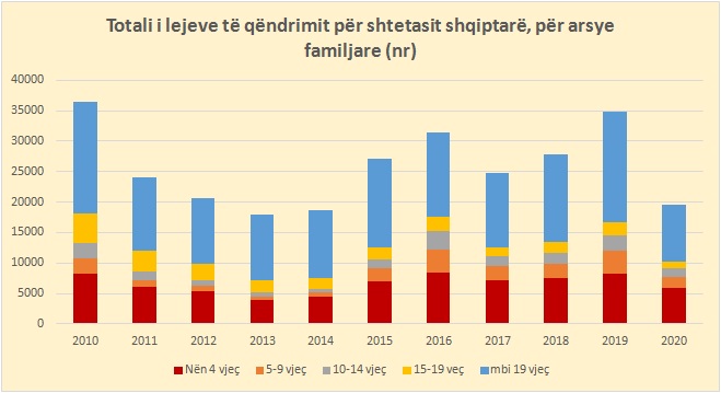 Sipas Eurostat, gati 30% e totalit të lejeve të dhëna ishin për fëmijët nën 4 vjeç, një tregues ky që po largohen kryesisht familjet e reja. Vitin e kaluar kjo peshë ishte 24%.