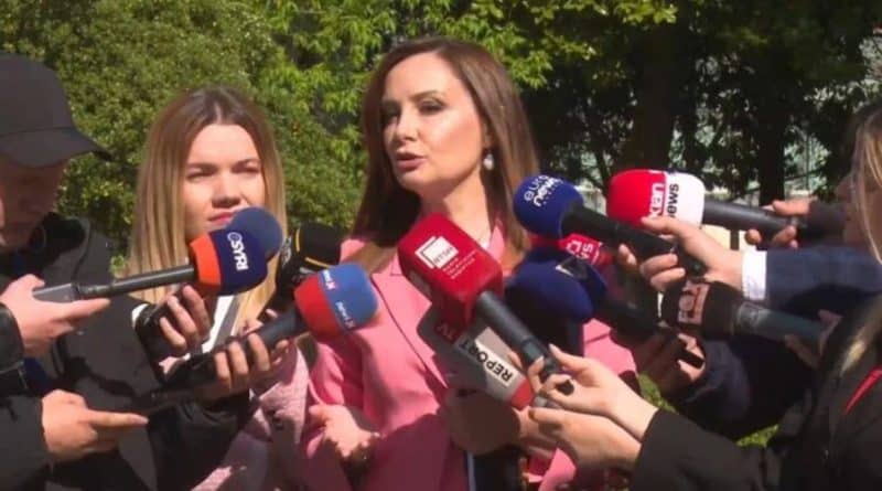 Deputetja Jorida Tabaku mbajti një konferencë për shtyp përpara nisjes së seancës plenare ku pritet të diskutohet projektligji për portet turistike si investime strategjike, duke ngritur shqetësime serioze për përputhshmërinë e tij me standardet europiane dhe procesin e integrimit.
