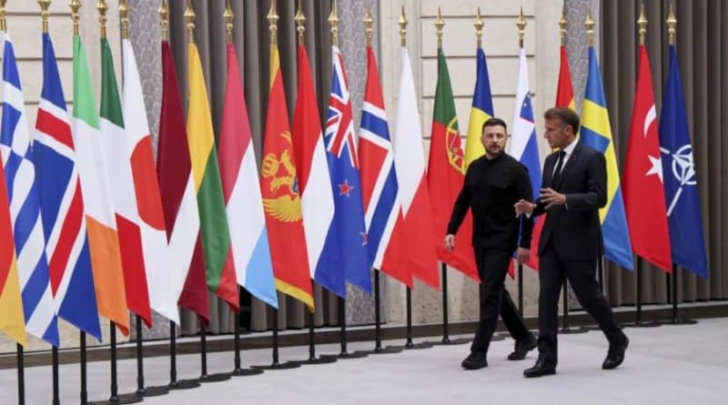 Duke folur pas samitit të 35 vendeve, të quajtur “Koalicioni i të vullnetshmëve”, presidenti francez ka akuzuar Rusinë se po përpiqet të vonojë procesin e paqes për të fituar më shumë kohë për të pushtuar më shumë territor ukrainas.