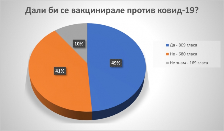 Për më pak se 48 orë, 1,658 lexues iu përgjigjën mini-sondazhit të botuar nga redaksia e MKD.mk, e cila i referohet pyetjes nëse ata do të vaksinohen kundër Covid-19.
