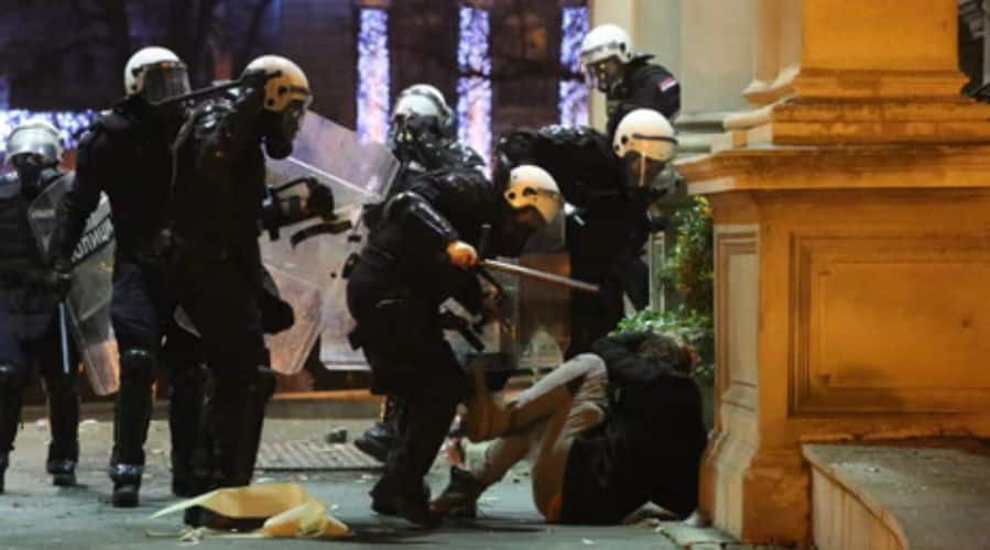 Që nga e marta, dhe përsëri të shtunën, përleshjet midis mbështetësve të qeverisë dhe protestuesve janë përshkallëzuar në disa qytete serbe, duke i transformuar ato në fushëbeteja nate, me burra të maskuar me origjinë të paqartë që vandalizojnë zyrat e partisë në pushtet. Policia ka kryer një sërë arrestimesh brutale, videot e të cilave janë postuar në mediat sociale, me sa duket me qëllim frikësimin e opinionit publik, ndërsa qeveria akuzon kundërshtarët se duan të “shkatërrojnë Serbinë” dhe ta zhytin vendin në “luftë civile”. Kjo strategji të kujton ndërhyrjen e titushkëve në Kiev gjatë revolucionit të Maidanit në vitet 2013-2014, kur partia e atëhershme në pushtet përdori grupe huliganësh dhe policë me rroba civile për të mbjellë dhunë në tubimet paqësore.