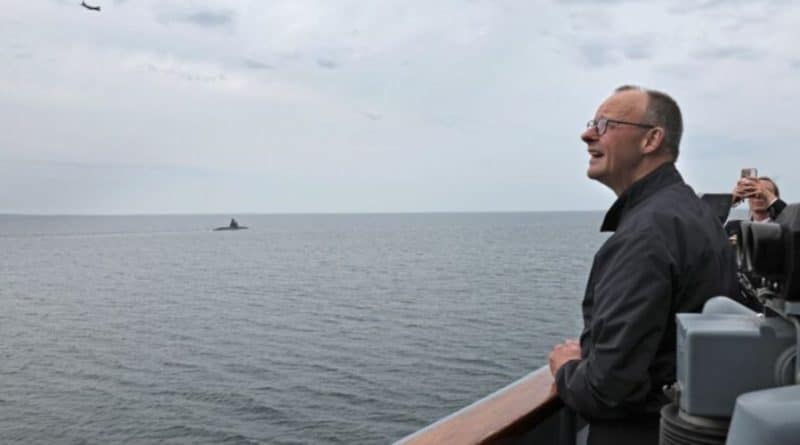 Merz kishte folur më parë me inspektorin e marinës, Jan Christian Kaack, në komandën detare në portin verior të Rostockut dhe kishte vizituar selinë e re taktike detare, të njohur si Komandanti i Task Forcës Baltike.