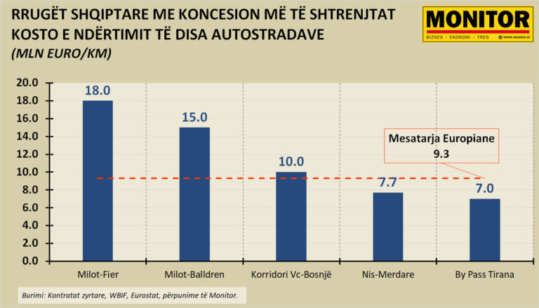 Kosto e ndërtimit të Milot-Fier është gjithashtu të paktën dy herë më e lartë se projekte të ngjashme në vendet fqinje, psh Nis-Merdare, projekt i financiar nga BE.