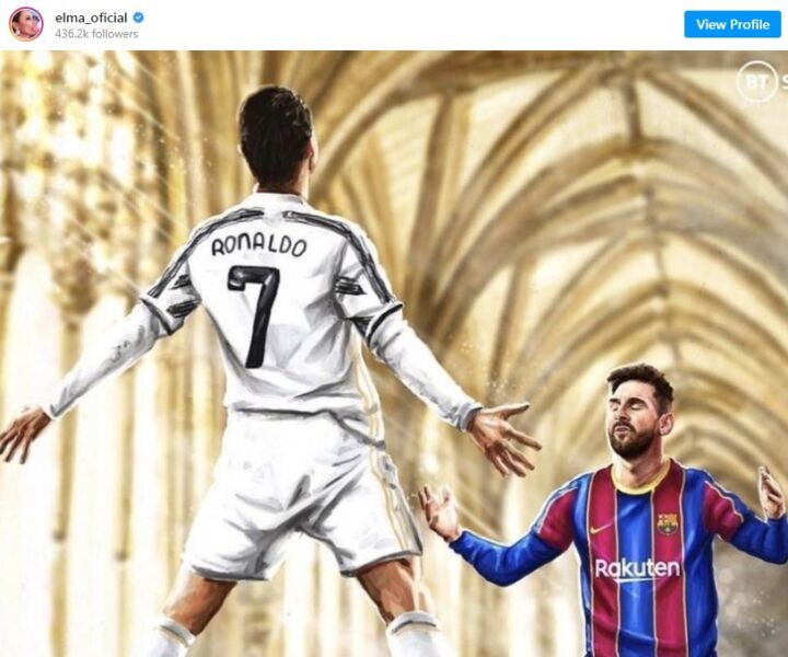 Motra e Cristiano Ronaldos, Elma Aveiro, e ka postuar një fotografi të Lionel Messit duke e adhuruar vëllain e saj, pas fitores së Juventusit 3:0 kundër Barcelonës në Ligën e Kampionëve të martën.
