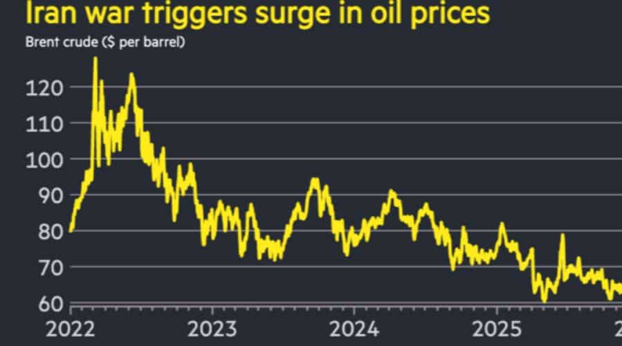 Çmimet ndërkombëtare të naftës kanë kaluar pragun e 100 dollarëve për fuçi, duke u rritur me mbi 25% brenda pak ditësh, ndërsa tregjet globale reagojnë ndaj përshkallëzimit të konfliktit në Lindjen e Mesme dhe frikës për ndërprerje të furnizimit. Sipas raportimeve të agjencisë Reuters, kjo është rritja më e fortë e çmimeve që nga kriza energjetike e vitit 2022.