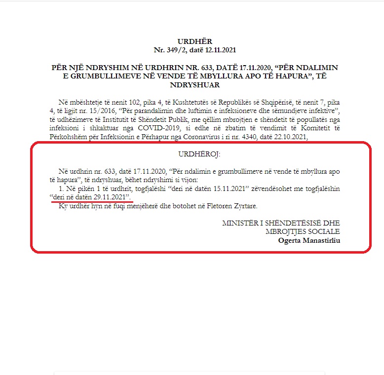 Çuditërisht, data 30 Nëntor 2021 ishte jashtë “urdhërit ndalues” të Manastirliut. Vendimi i saj i shtrinte efektet deri në datën 29 Nëntor.
