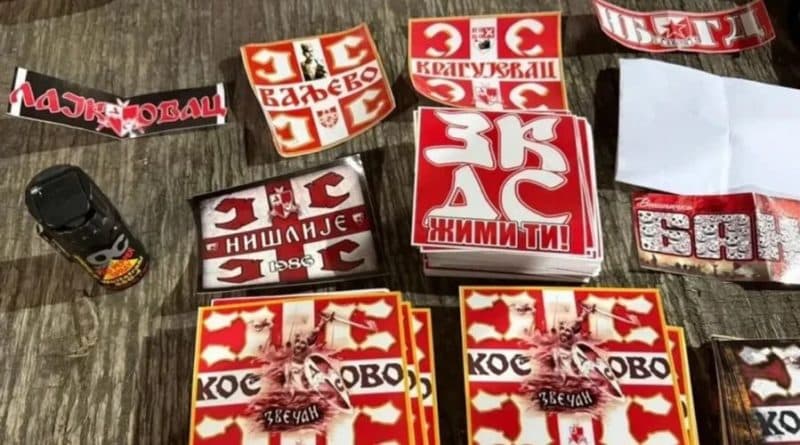 Materialet e konfiskuara kishin përmbajtje nxitëse të urrejtjes dhe glorifikim të figurave të lidhura me sulmin në Banjskë, simbolet e grupit ultra-nacionalist “Delije Sever” të klubit futbollistik Cervena Zvezda, të gërshetuara me portretin e Stefan Nedeljkoviqit, i përmendur si një nga personat e vrarë gjatë sulmit terrorist në Banjskë të Zveçanit.